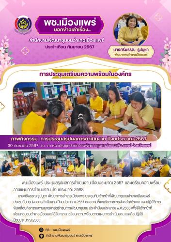 ?พช.เมืองแพร่ ประชุมสรุปผลการดำเนินงาน ปีงบประมาณ 2567 และเตรียมความพร้อมวางแผนการดำเนินงาน ปีงบประมาณ 2568